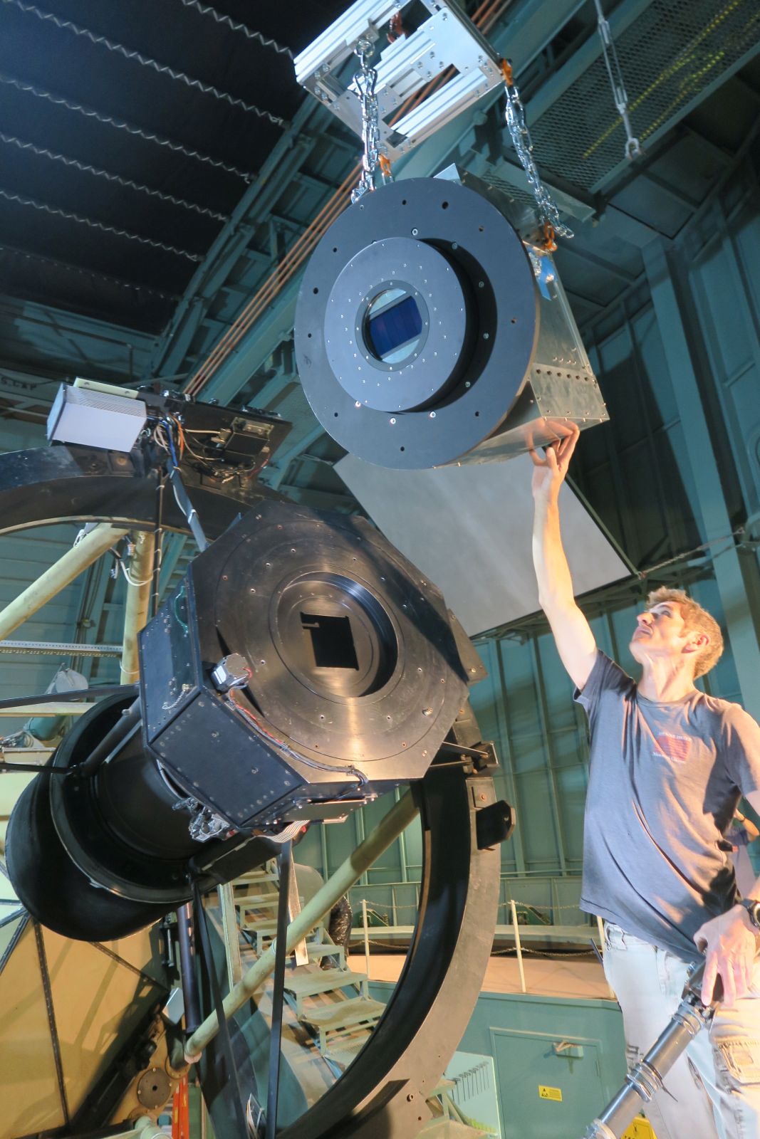 このカメラを搭載する望遠鏡が、アメリカ本土随一の観測拠点・ キットピーク国立天文台 に設置されたBok望遠鏡です。実は、広視野観測が可能な主焦点を持つ 望遠鏡というのは意外と数が少なくて、口径は2.3m(90インチ)と 決して大きくはないものの、主焦点を持つBok望遠鏡は私たちの目的には 適した望遠鏡なのです。アリゾナ大学との共同研究を進め、 私たちは「広視野高時間分解能観測」という新たな観測手段を 手にいれたのです。